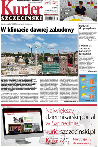 Wydawca: Kurier Szczeciński spółka z o.o., 70-550 Szczecin, pl. Hołdu Pruskiego 8