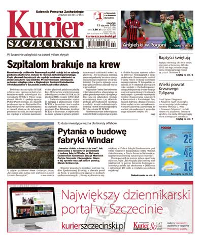 Wydawca: Kurier Szczeciński spółka z o.o., 70-550 Szczecin, pl. Hołdu Pruskiego 8