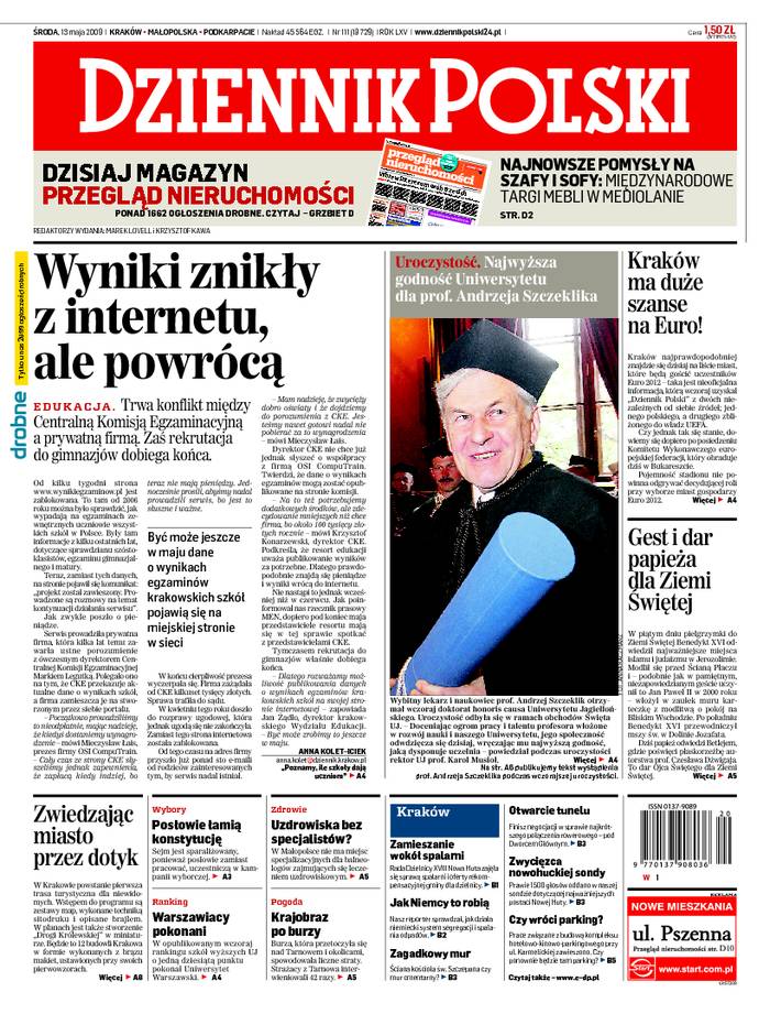 Wydawca: POLSKAPRESSE Sp. z o.o., Oddział Prasa Krakowska w Krakowie