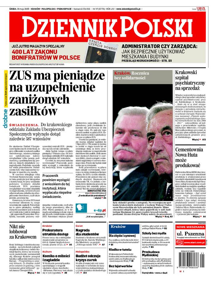 Wydawca: POLSKAPRESSE Sp. z o.o., Oddział Prasa Krakowska w Krakowie
