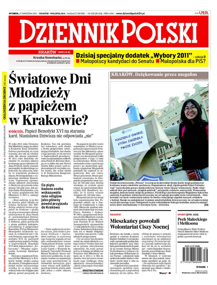 Wydawca: POLSKAPRESSE Sp. z o.o., Oddział Prasa Krakowska w Krakowie