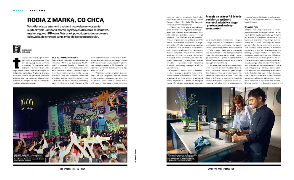 Taki sukces odniosła zrealizowana we wrześniu 2024 roku kampania McDonald’s z raperką Bambi – „Bambi robi z Makiem, co chce”. Opierała się na krótkich formatach wideo i treściach digitalowych, projektowanych z myślą o social mediach. Były też działania offsetowe: specjalny zestaw, merch, a nawet event – koncert na dachu jednej z restauracji sieci, w Nieporęcie pod Warszawą. Humor, przerysowanie i świadome operowanie konwencją internetowego chaosu były kluczowymi narzędziami budowania zaangażowania, a McDonald’s rzeczywiście pozwolił Bambi „robić z Makiem, co chce”.