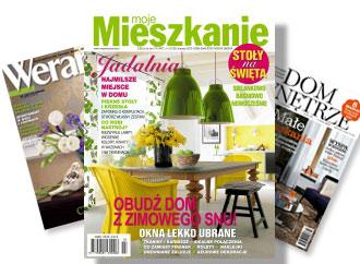 Były to ”Elle Decoration” (Burda Media Polska) oraz ”Tak mieszkam” (Prószyński Media). Najlepszy wynik osiągnęły ”Cztery Kąty” (Agora SA), których średnie rozpowszechnianie płatne razem od stycznia do grudnia ub.r. wyniosło 99 714 egz. (spadek o 13,95 proc. w porównaniu z 2008 rokiem). Na kolejnych miejscach znalazły się: ”M jak mieszkanie” (Murator SA) – 52 702 egz. (spadek o 19,25 proc.), ”Moje Mieszkanie” (Murator SA) – 48 864 egz. (wzrost o 0,74 proc.), ”Mój Piękny Dom” (Burda Media Polska) – 25 082 egz. (spadek o 16,46 proc.), ”Weranda” (Wydawnictwo Te-Jot) – 23 774 egz. (spadek o 2,22 proc.), ”Dobre Wnętrze” (Murator SA) – 22 049 egz. (spadek o 7,14 proc.), ”Dom & Wnętrze” (Edipresse Polska SA) – 21 007 egz. (spadek o 0,42 proc.). We grudniu ub.r. rozpowszechnianie płatne razem w segmencie wyniosło: ”Cztery Kąty” – 98 495 egz., ”M jak mieszkanie” – 50 799 egz., ”Moje Mieszkanie” – 43 467 egz., ”Mój Piękny Dom” – 25 094 egz., ”Weranda” – 23 013 egz., ”Dobre Wnętrze” – 20 662 egz., ”Dom & Wnętrze” – 20 080 egz. Dane: ZKDP.