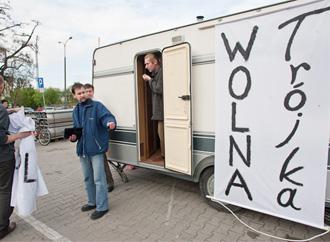 Domagają się rezygnacji lub odwołania dyrektora anteny Jacka Sobali. Sprzeciwiają się upolitycznieniu stacji i żądają usunięcia dokonanych przez Sobalę zmian kadrowych i w ramówce anteny. – Dyrektor Sobala nie sprawdził się ani jako dyrektor Radia Bis, ani jako dyrektor Programu I Polskiego Radia, powinien ustąpić ze stanowiska. Zależy nam, żeby Trójka była znów radiem obiektywnym politycznie – mówi Piotr Jedliński, organizator pikiety. Jak podkreśla, nie jest członkiem Komitetu Miłośników Trójki, który w styczniu br. protestował przeciwko zmianom w stacji i odwołaniu z funkcji dyrektora anteny Magdaleny Jethon. Jacek Sobala o pikiecie dowiedział się od ”Presserwisu”: - Trójki słucha 2 mln 600 tys. osób. Nie wiem, w jakim stopniu osoby protestujące pod siedzibą radia reprezentują słuchaczy – mówi tylko. Przyczepa kempingowa z protestującymi ma stać przy ul. Myśliwieckiej do najbliższej soboty 8 maja br. Tego dnia protestujący chcą zorganizować manifestację. ”Zapraszamy wszystkich, którzy uważają obecność Jacka Sobali w Trójce za nieporozumienie oraz tych, którzy chcą dać wyraz niezgodzie na traktowanie słuchaczy jak bezwolne lemingi przez Zarząd Polskiego Radia” – poinformowali organizatorzy na stronie internetowej Ratujmytrojke.pl.