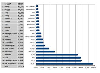 Z danych TNS OBOP za okres lipiec-sierpień br. wynika, że w wakacje najdłużej oglądaliśmy telewizję w niedziele – statystyczny Polak poświęcał na to średnio 3 godziny 48 minut. Najchętniej oglądane były transmisje z mistrzostw świata w piłce nożnej. Finałowy mecz turnieju (11 lipca w TVP 1) był najchętniej oglądanym programem tegorocznych wakacji –zgromadził 7,7 mln osób. Widzów przyciągały też powtórki serialu ”Ranczo” – najchętniej oglądany miał 4,2 mln widzów (25 sierpnia, TVP 1). W wakacje cennikowo najwięcej na reklamę w telewizji przeznaczyły firmy: Unilever Polska (105,6 mln zł), P&G (69,7 mln zł) i PTK Centertel (54,3 mln zł). Wśród stacji największe przychody reklamowe odnotował Polsat (326,6 mln zł), drugi był TVN (243,9 mln zł), a trzecia Jedynka (238,4 mln zł). Cztery główne telewizje (TVP 1, TVP 2, Polsat i TVN) uzyskały w wakacje w sumie 55,8 proc. udziału w rynku – mniej niż rok temu, gdy było to 58,1 proc. Wzrost odnotował z tych stacji tylko TVN – do 11,2 proc. (z 10,7 proc.).(RUT, 06.09.2010)