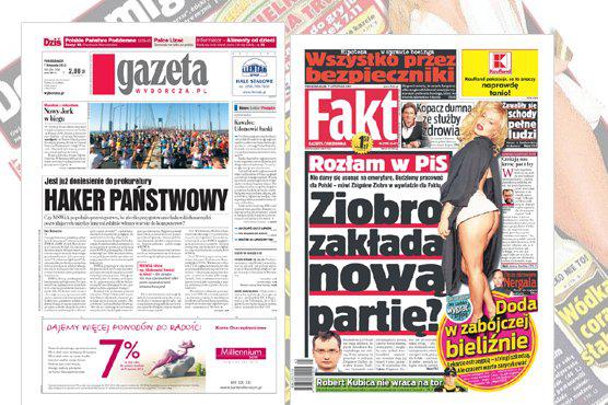 Z danych Związku Kontroli Dystrybucji Prasy wynika, że średnie rozpowszechnianie płatne razem "Faktu" (Ringier Axel Springer Polska) w okresie styczeń-wrzesień br. wyniosło 399 821 egz. i było o 9,9 proc. mniejsze niż w trzech kwartałach ub.r. Druga w zestawieniu jest "Gazeta Wyborcza" (Agora) z wynikiem 307 311 egz. (8,7 proc. mniej niż w ub.r.), na trzecim miejscu uplasował się zaś tabloid "Super Express" (Murator), którego średnie rozpowszechnianie płatne razem wyniosło 173 594 egz. (spadek o 5,4 proc.).