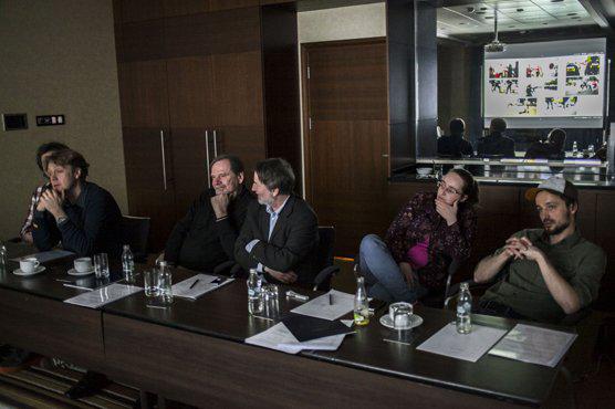 Pierwsze posiedzenie jury Grand Press Photo 2013, od lewej: Odd Andersen, Chris Niedenthal, Marek Grygiel, Joanna Kinowska, Rafał Milach (fot. Piotr Król/Press)
