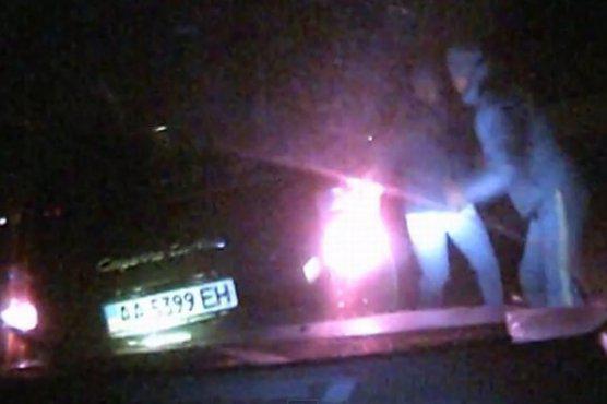 Kadr z wideorejestratora z samochodu pobitej dziennikarki