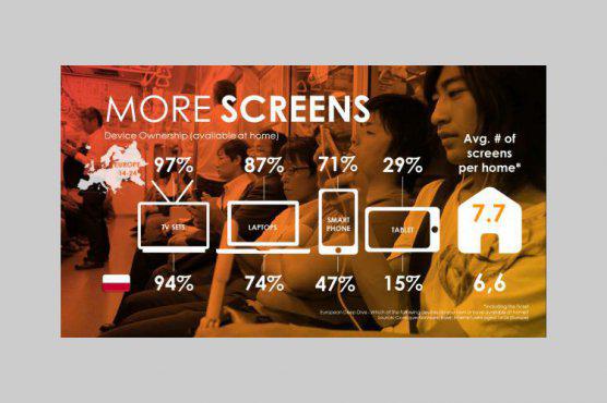 Telewizor ma 94 proc. badanych (97 proc. dla całej Europy), a laptop – 74 proc. (87 proc.). 48 proc. posiada smartfon (71 proc. to średnia europejska), z czego 73 proc. korzysta z treści wideo na tym urządzeniu i jest to najwyższy odsetek w Europie (europejska średnia - 58 proc.). Natomiast tablet ma 15 proc. badanych (29 proc. dla Europy), a 88 proc. jego użytkowników ogląda treści wideo (70 proc. w Europie).