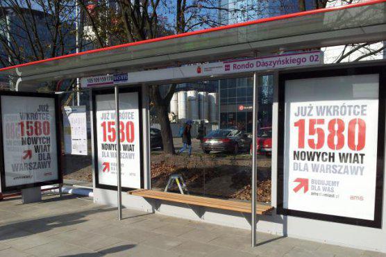 W poniedziałek 27 października 2014 przy rondzie Daszyńskiego w Warszawie stanęła pierwsza z 1580 wiat przystankowych, jakie AMS SA w ramach koncesji otrzymanej od miasta stołecznego ma wybudować w ciągu trzech lat.