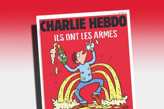 Na okładce numeru, który ukazał się dzisiaj, umieszczono rysunek przedstawiający mężczyznę podziurawionego postrzałami, trzymającego w ręku butelkę szampana. “Oni mają broń, wkurzamy ich, bo my mamy szampana” - głosi napis przy rysunku.