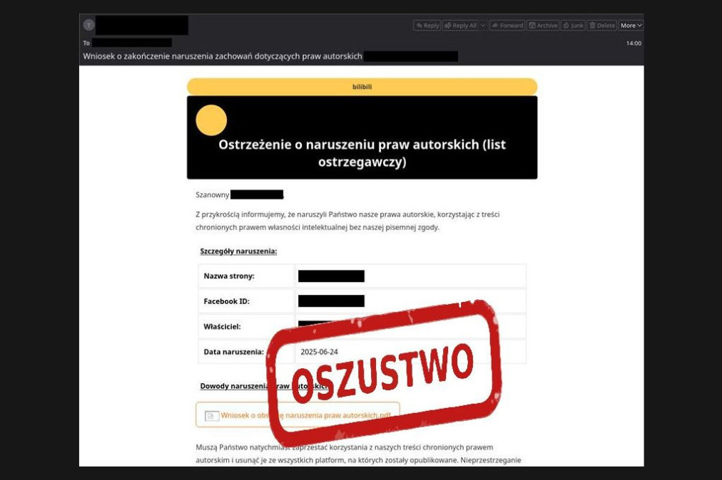 Przestępcy podszywają się pod organizacje zajmujące się ochroną praw autorskich (fot. NASK)