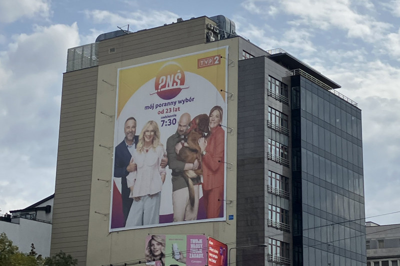 Biuro prasowe TVP nie odpowiedziało nam na pytanie, czy wielkoformatowa reklama "Pytania na śniadanie" umieszczona jest tylko w jednym miejscu, czy pojawiła się też w innych lokalizacjach.