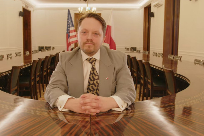 Michał Marszał zamieścił na YouTubie na Kanale bez nazwy nagranie stylizowane na orędzie prezydenckie (screen: YouTube/Kanał bez nazwy)