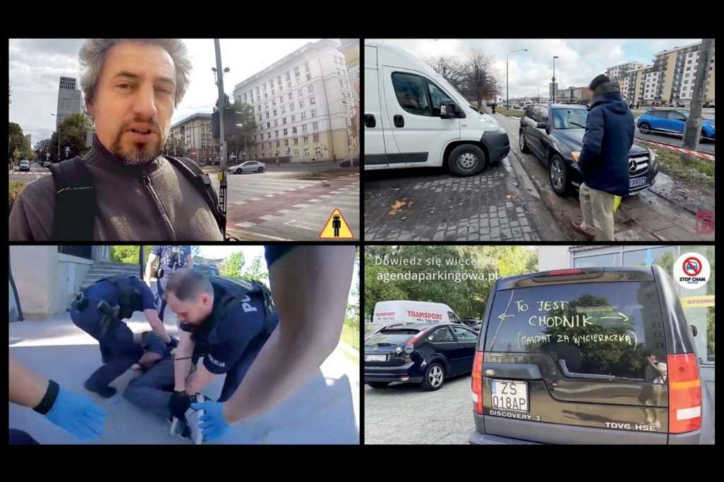 Maksym Szewczuk w grudniu 2024 roku zorganizował świąteczne czuwanie przy Bazarku na Dołku na Ursynowie. Akcja miała służyć zajęciu chodnika przez pieszych – czyli tak, jak powinno być. Przyszło kilkanaście osób. Ale trudno od niego usłyszeć, żeby mówił o sobie „aktywista”. Natomiast chętnie przekazuje innym zasady swojego działania. To unikanie przemocy, również słownej, i próba jak najłagodniejszego nawiązania kontaktu z kierowcą, którego filmuje. Nie zawsze się udaje. – Ale ludzie zwykle nie bronią tego, że źle zaparkowali. Gwałtownie reagują na samo zwrócenie uwagi – wyjaśnia.