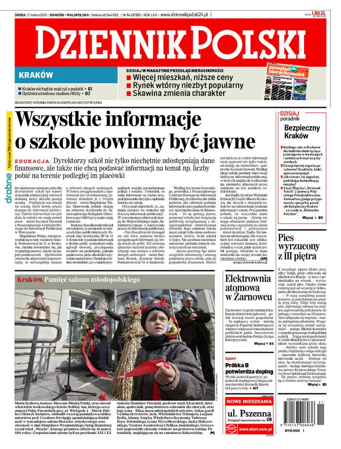 Wydawca: POLSKAPRESSE Sp. z o.o., Oddział Prasa Krakowska w Krakowie