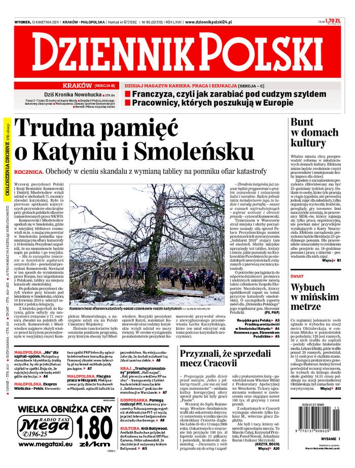 Wydawca: POLSKAPRESSE Sp. z o.o., Oddział Prasa Krakowska w Krakowie