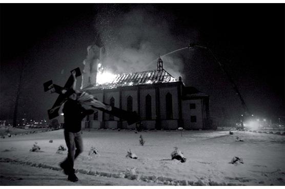 Kiedy przyjechałem na miejsce, ludzie wynosili akurat z kościoła konfesjonały, figury, wszystko, co się dało. Jako jeden z ostatnich był wynoszony krzyż. Dopóki wynosili konfesjonały, to nie było nic nadzwyczajnego. Ot, pali się kościół – nie zdarza się to co dzień, ale też nie jest to wielka rzecz. Jednak na widok człowieka z krzyżem pomyślałem, że trzeba się przyłożyć, bo może z tego wyjść coś lepszego. Kiedy go zobaczyłem, miałem ze 30 sekund, żeby się przygotować.