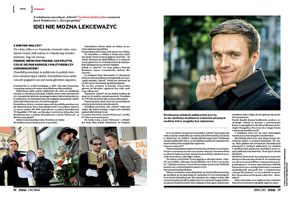 Z redaktorem naczelnym „Liberté!” Leszkiem Jażdżewskim rozmawia Jacek Nizinkiewicz z „Rzeczpospolitej”.