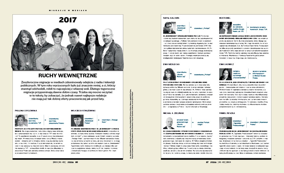 Zeszłoroczne migracje w mediach zdominowały odejścia z radia i telewizji publicznych. W tym roku wyrzuconych było już znacznie mniej, a ci, którzy stamtąd odchodzili, robili to najczęściej z własnej woli. Dlatego tegoroczne migracje przypominają dawne dobre czasy. Trzeba się mocno wczytać w te teksty, by zobaczyć, że jednak nawet najlepsze redakcje nie mają już tak dobrej oferty pracowniczej jak przed laty.