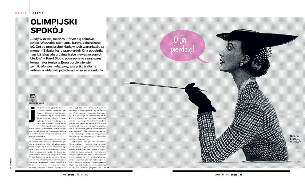 Jest 26 lipca, na igrzyskach w Tokio trwa właśnie tenisowe spotkanie, w którym Aryna Sabalenka mierzyła się z Donną Vekić. Ale jak to na igrzyskach – równolegle sportowcy rywalizują w innych dyscyplinach. Stopa wściekły: – Przyszedłem komentować mecz tenisa, a musiałem czekać 40 minut, bo odbywała się transmisja skoków do wody. I dałem wyraz swej irytacji – tłumaczy dziennikarz.