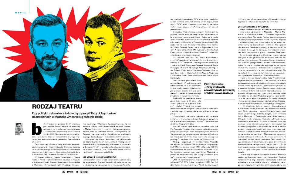 Czy polityk i dziennikarz to koledzy z pracy? Przy dobrym winie na urodzinach u Mazurka wyjaśnić się tego nie udało