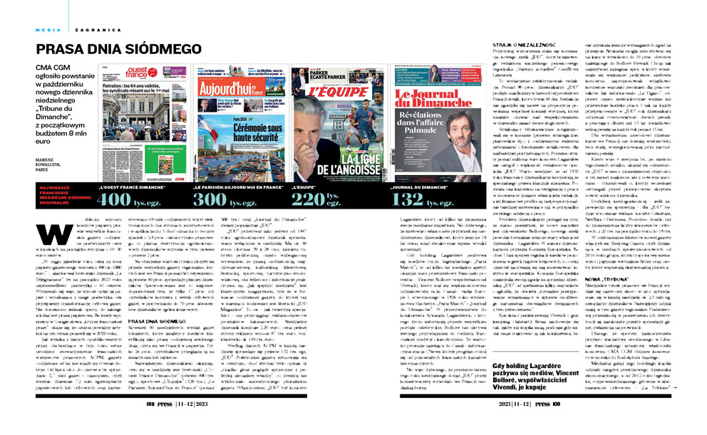 CMA CGM ogłosiło powstanie w październiku nowego dziennika niedzielnego „Tribune du Dimanche”, z początkowym budżetem 8 mln euro