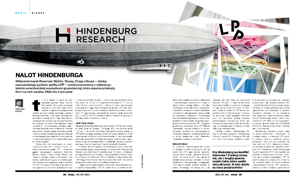 Właściciel marek Reserved, Mohito, Sinsay, Cropp i House – chluba warszawskiego parkietu spółka LPP – został przeceniony o miliardy po tekście amerykańskiej wywiadowni gospodarczej, która ujawnia przekręty firm i na nich zarabia. Mało kto o tym pisał