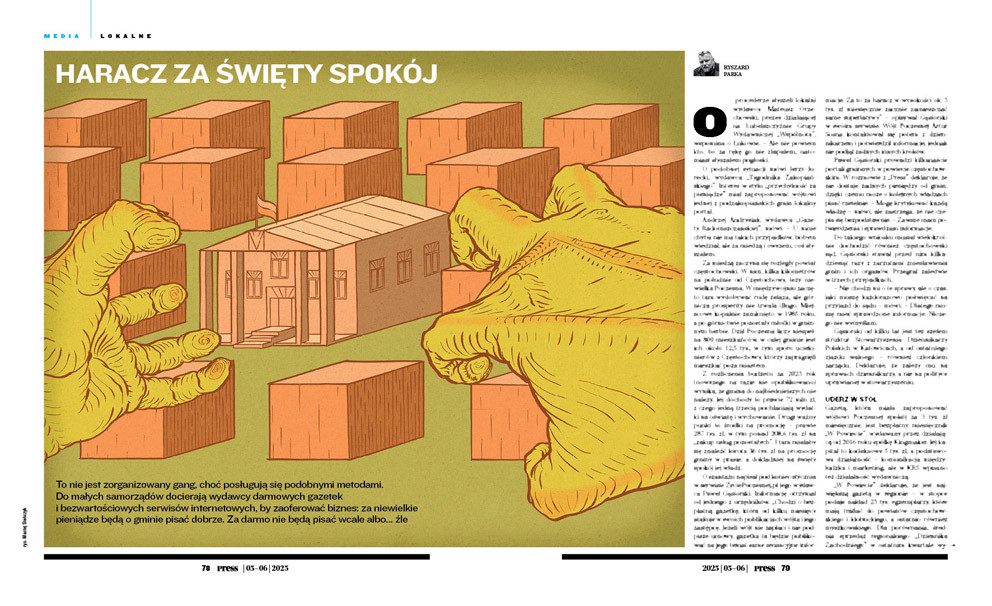 To nie jest zorganizowany gang, choć posługują się podobnymi metodami. Do małych samorządów docierają wydawcy darmowych gazetek i bezwartościowych serwisów internetowych, by zaoferować biznes: za niewielkie pieniądze będą o gminie pisać dobrze. Za darmo nie będą pisać wcale albo… źle