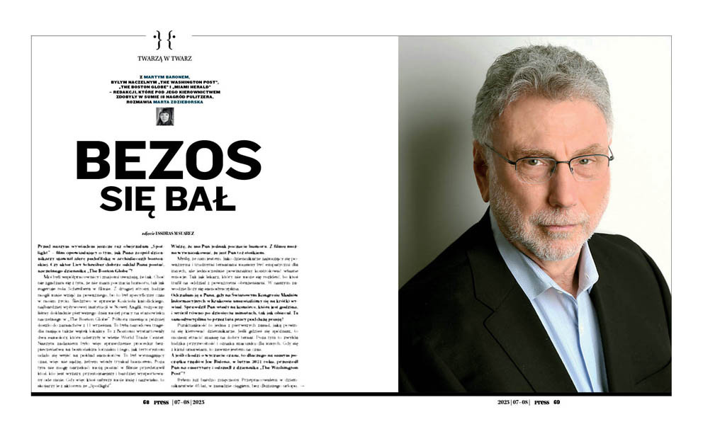 Z Martym Baronem, byłym naczelnym „The Washington Post”, „The Boston Globe” i „Miami Herald” – redakcji, które pod jego kierownictwem zdobyły w sumie 18 nagród Pulitzera, rozmawia Marta Zdzieborska