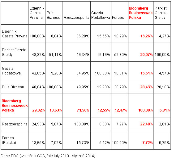 Z danych o współczytelnictwie wynika, że po „BBP” sięga 13,3 proc. czytelników „Dziennika Gazety Prawnej” (Infor Biznes) i 28,4 proc. czytelników „Pulsu Biznesu” (Bonnier Business Polska). Natomiast 29 proc. czytelników „BBP” czyta „DGP”, a 10,6 proc. – „PB”.