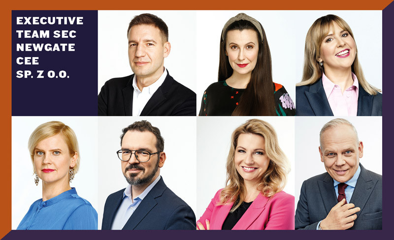 EXECUTIVE TEAM SEC NEWGATE CEE SP. Z O.O. Sebastian Hejnowski, Zofia Bugajna-Kasdepke, Katarzyna Tyska, Monika Cicha, Bartłomiej Kupiec, Agnieszka Trzaskoma, Maciej Powroźnik