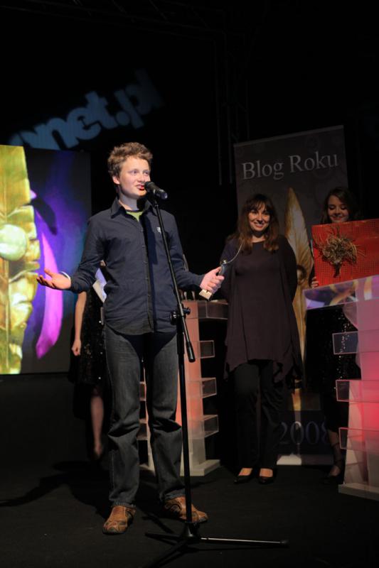 Marcin Malik - laureat nagrody Blog Teen Blogerów 2008 odebrał nagrodę z rąk Marty Czartoryskiej - dyrektor marketingu Grupy Onet.pl (druga z prawej). (fot. Karol Piechocki Press)