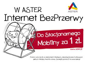 Operator kablowy Aster ruszył wczoraj z kampanią reklamową promującą usługę Internetu szerokopasmowego i mobilnego.