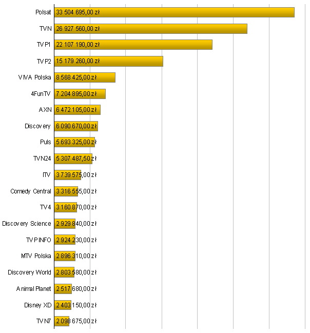 | 2 | TELEEXPRESS | TVP1 | 18-07-2010 | 17:00:08 | 4 548 | 12,65% |