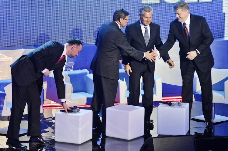 Przygotowania do debaty z udziałem: prof. Leszka Balcerowicza, prezesa TP SA Macieja Wituckiego i byłego prezydenta Aleksandra Kwaśniewskiego (fot. Marcin Obara)