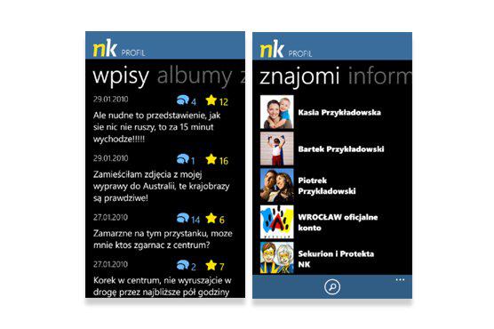 Zrzut z ekranu nowej aplikacji dla systemu Windows Phone 7. (Fot. media.nk.pl)