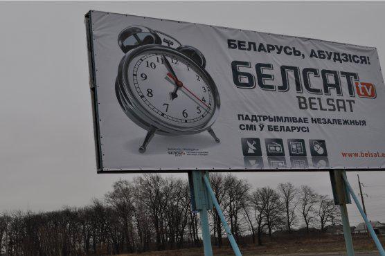 Po ukraińskiej stronie granicy, przy drogach prowadzących do najbardziej uczęszczanych przejść granicznych z Białorusią, w Domanowie, Lubieszowie, Sarnach, Owruczy i Czernichowie stanęły billboardy o wymiarach 6 x 3 m z hasłem przewodnim kampanii „Obudź się, Białorusi”. W ten sposób Białorusini namawiani są do oglądania Biełsatu każdego dnia już od 7 rano, a także do sięgania do innych niezależnych mediów, które dostępne są na Białorusi: rozgłośni radiowych, gazet i stron internetowych. Billboardy reklamują również internetową stronę bielsat.eu.