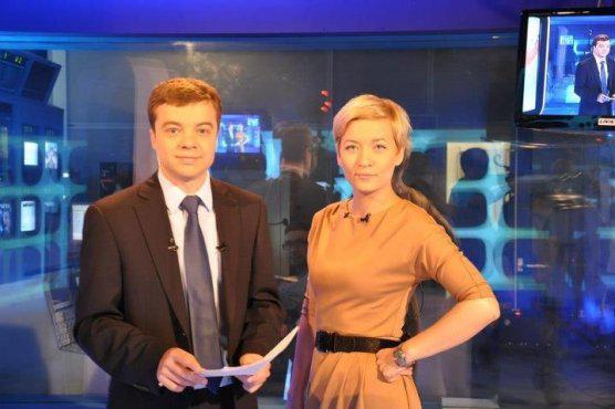 Prowadzący "Studio Biełsat" Wolha Saule i Aleś Zaleuski (fot. Biełsat)