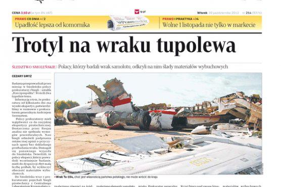 Tylko w części nakładu "Rzeczpospolitej" (Presspublica) został opublikowany materiał Cezarego Gmyza „Trotyl na wraku tupolewa". Redakcja nie zdążyła przygotować tekstu do wydania ogólnokrajowego, które jest wcześniej zsyłane do druku.