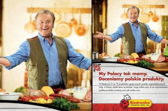 Rozpoczęła w lutym br. kampania Biedronki z udziałem Daniela Olbrychskiego prowadzona jest pod hasłem: "My Polacy tak mamy. Doceniamy polskie produkty". Działania promują polskich producentów współpracujących z siecią i komunikuje, że dziewięć na dziesięć produktów spożywczych dostępnych w sklepach pochodzi z Polski.
