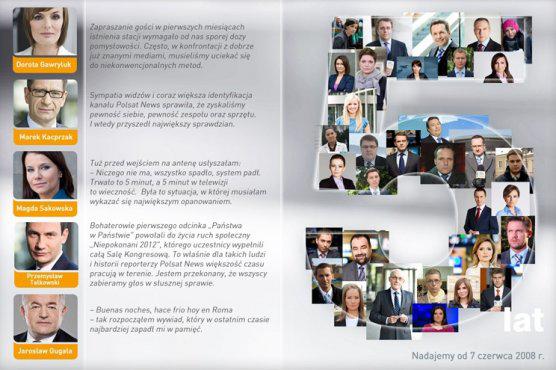7 czerwca Polsat News kończyć pięć lat. Z tej okazji pięciu dziennikarzy tej stacji przypomina najważniejsze wydarzenia z poszczególnych lat nadawania kanału oraz wspomina zakulisowe historie z życia redakcji.