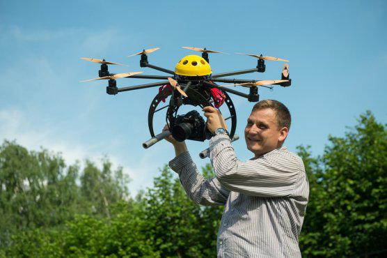 Fotoreporter PAP Wojciech Pacewicz ze swoim dronem (fot. Karol Zienkiewicz)
