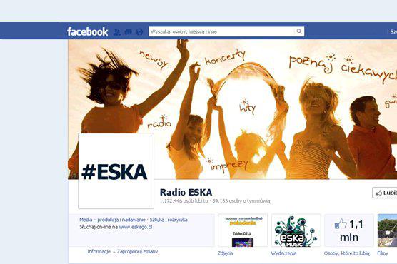 Radio Eska odnotowało w sierpniu największy wzrost liczby fanów na swoim fan page na Facebooku - ma już ich 1,1 mln.