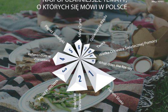 Na polskich stronach Facebooka przebojem 2013 roku był internetowy mem - Harlem Shake. Poza tym Polacy chętnie rozmawiali o referendum prezydenckim w Warszawie i odświeżeniu rządu, dyskusje budził też papież Franciszek i jego poprzednik Benedykt. Najpopularniejszą gwiazdą polskiego Facebooka jest Miley Cyrus i spopularyzowany przez nią taniec - "Twerk".