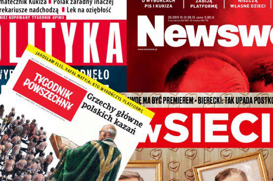 Według danych Związku Kontroli Dystrybucji Prasy "Polityka" (Polityka) ze średnią 118 721 egz. (spadek o 2,82 proc.) w kwietniu 2015 miała wyższą sprzedaż niż "Newsweek Polska" (Ringier Axel Springer Polska) - 112 260 egz. (spadek o 22,02 proc.). Wzrost sprzedaży odnotował "Tygodnik Powszechny" (Tygodnik Powszechny) - o 2,9 proc., do 20 732 egz.