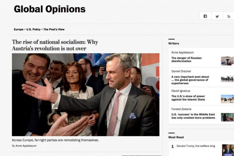 "The Washington Post" otworzył w serwisie internetowym poświęconą sprawom zagranicznym sekcję Global Opinions. Jako pierwsza rusza jej europejska część, którą kieruje Anne Applebaum.