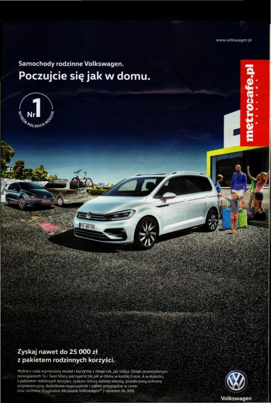 Wczorajsze wydanie bezpłatnego dziennika "Metrocafe.pl" było opakowane w reklamę Volkswagena promującą marki: Golf Sportsvan, Touran i Sharan. - To kampania dotycząca rodzinnych minivanów Volkswagena, które są najczęściej wybierane przez polskie rodziny. Rozpoczęła się dużo wcześniej i niezależnie od Światowych Dni Młodzieży - zapewnia Tomasz Tonder, PR manager Volkswagen Group. Jednak przyznaje, że papież Franciszek pomógł zbudować marce świadomość istnienia modelu Golf Sportsvan. - Tak duża liczba publikacji na jego temat musi przynieść efekt – mówi Tonder.