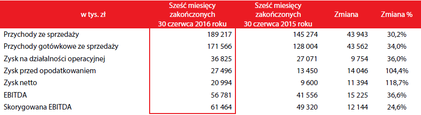 EBITDA spółki za sześć miesięcy br. to 56,8 mln zł (wzrost o 36,6 proc.), a zysk netto - 21 mln zł (wzrost o 118,7 proc.).