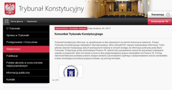 Trybunał Konstytucyjny opublikował na stronie Trybunal.gov.pl komunikat, w którym odnosi się do tekstu Siedleckiej: